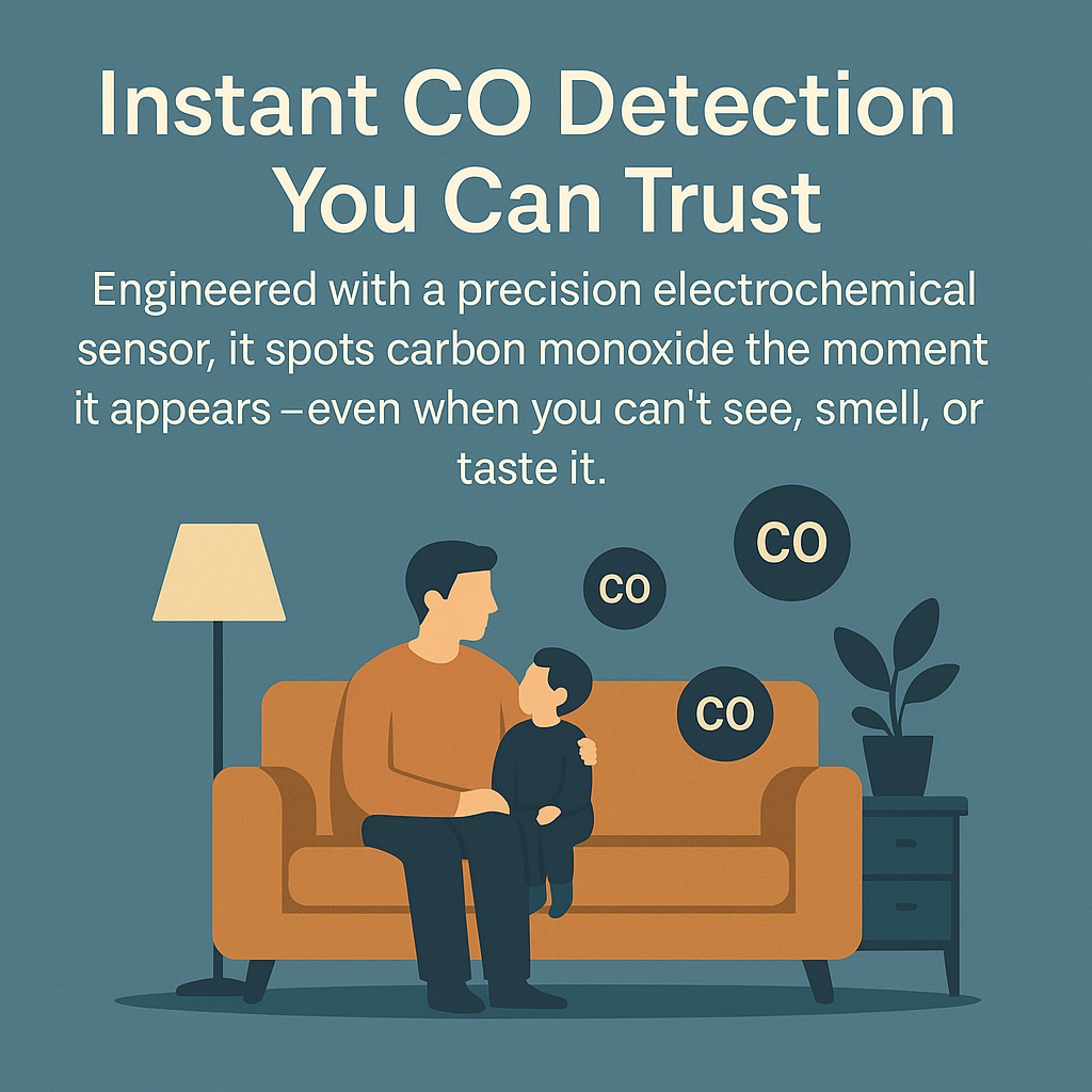 Engineered with a precision electrochemical sensor, it spots carbon monoxide the moment it appears — even when you can’t see, smell, or taste it.